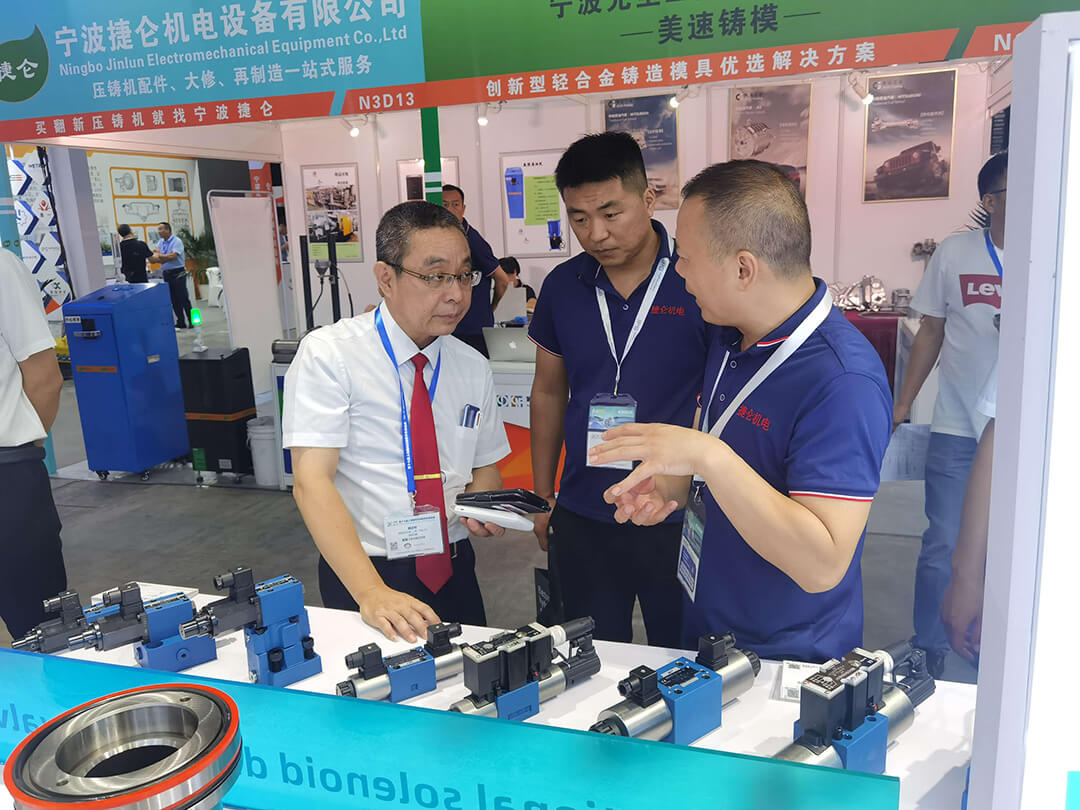 涌鎮(zhèn)液壓展臺上展示了最新的液壓元件適用于壓鑄設備,助力提升壓鑄效能,吸引了眾多專業(yè)觀眾前來參觀和交流。涌鎮(zhèn)液壓的技術人員向觀眾介紹了公司的產(chǎn)品和技術,現(xiàn)場進行了技術交流和研討,展示了涌鎮(zhèn)液壓在壓鑄行業(yè)的實際應用以及解決方案。